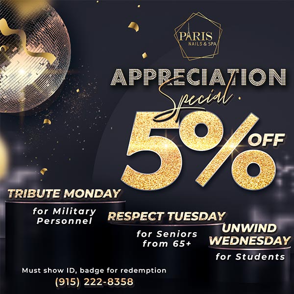 PARIS NAILS & SPA, TX 79938, provides professional nail services in an upscale environment. Services include manicures, eyelash, waxing, facial, and microblading. This high-class nail salon has already made a huge splash with the beauty industry in El Paso and the surrounding towns. Head to this nail salon to relax and be pampered! They offer thousands of nail colors for guests to choose from and nail technicians are trained in the latest manicure trends and techniques. We’ve earned the trust of our clients by providing the best manicure in the city. No matter your nail needs, PARIS NAILS & SPA has every possible nail option you’d need! We are located at 2260 N ZARAGOZA RD STE 105 & 106, EL PASO, TX 79938.